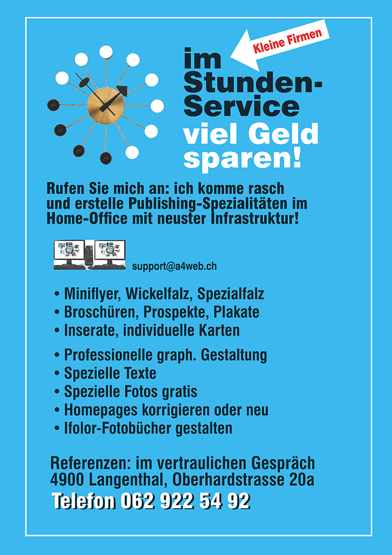 Eine Portal- oder eine Redaktionswebseite wie bei uns ersichtlich auf www.a4w.ch ist für manche Firmen die bessere Lösung als die herkömmlichen Schablonenwebseiten mit dem «Rasierapparat» oben rechts (Menü-Auswahl erscheint meistens oben rechts, wo sich die Menüs ausklappen). Statt dem Ressort (Menüs wurden von uns auf www.a4w.ch so betitelt, kann man auch „Deutsch“, „English“, „Français“ etc einprogrammieren, so ergeben sich stets in allen Sprachen pro Sprache 21 Artikel.) Dies genügt meistens, um eine Kleinfirma mit Informationen über die Firma journalistisch und professionell im Internet darzustellen.