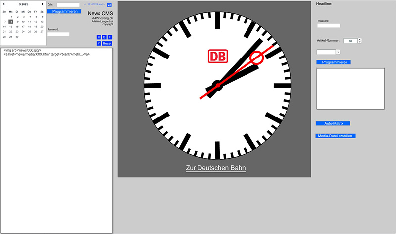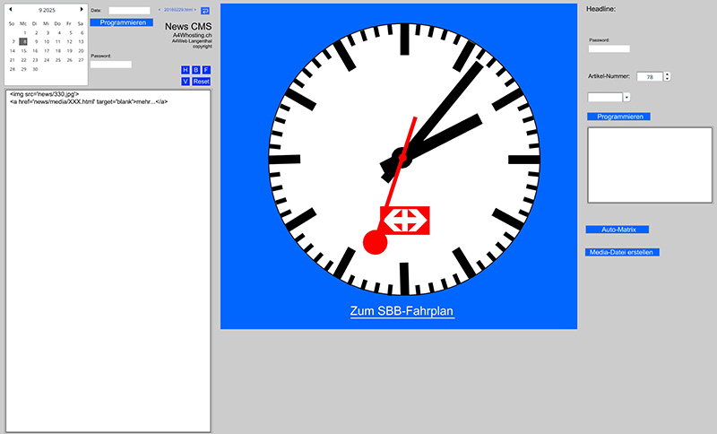 Schlussendlich verknüpft man die neue Layout-generierte Datei hoch oben auf den Netz im «Media»-Ordner dann noch mit unserem Auto-Matrix-Manager mit dem Artikel-Text, der im php-Redaktionsmanager abgespeichert worden ist (siehe Foto1 und Foto2).
